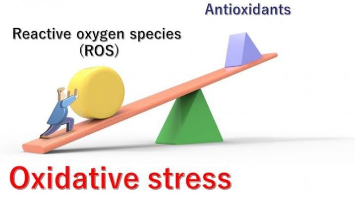 Unhealthy lifestyles, various diseases, stress, and aging can all contribute to an imbalance between the production of ROS and the body's ability to reduce and eliminate them. The resulting excessive levels of ROS cause "oxidative stress". Graphic courtesy of National Institutes for Quantum and Radiological Science and Technology