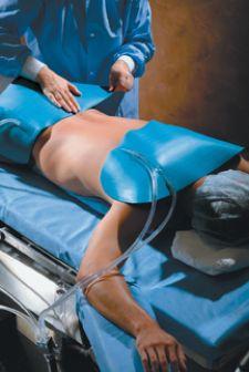 These small or large-sized rectangle pads are designed to be placed anywhere on the body where there is intact, well-perfused skin. The warming system provides a noninvasive method of temperature control, requiring minimal body coverage for maximum access to surgical sites. The system is ideal for complex surgeries involving access to large surface areas or open cavities such as cardiovascular, trauma, orthopedic or lipoplasty.