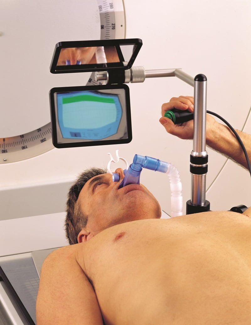The facility assesses the patient’s eligibility for a BH treatment (i.e., ability to perform a BH without undue difficulty) by asking patients to take several BHs and timing their duration. For suitable candidates, up to two BH scans are taken, a long one for planning and a short scan to assess reproducibility. A third scan is usually required without BH just in case the patient’s ability to hold their breath for a long period becomes compromised during treatment and the decision is made to re-plan without the BH.