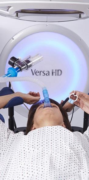 For patients with a liver tumor, OHSU has been using an Elekta system called Active Breathing Coordinator (ABC) to help patients manage their breathing during SBRT beam delivery — essentially “freezing” the tumor’s position and enabling the beam to concentrate on the lesion, while sparing surrounding normal tissues.