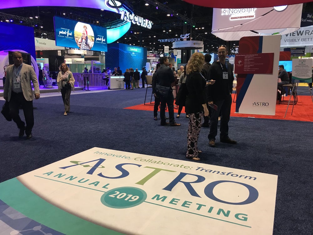 Below are photos from the American Society for Radiation Oncology (ASTRO) 2019 meeting September 2019 in Chicago. The annual conference has about 12,000 attendees. It is a showcase of the latest advances in radiation oncology technologies. Below are images of some of these radiation therapy technologies from the ASTRO expo floor with captions explaining them.
