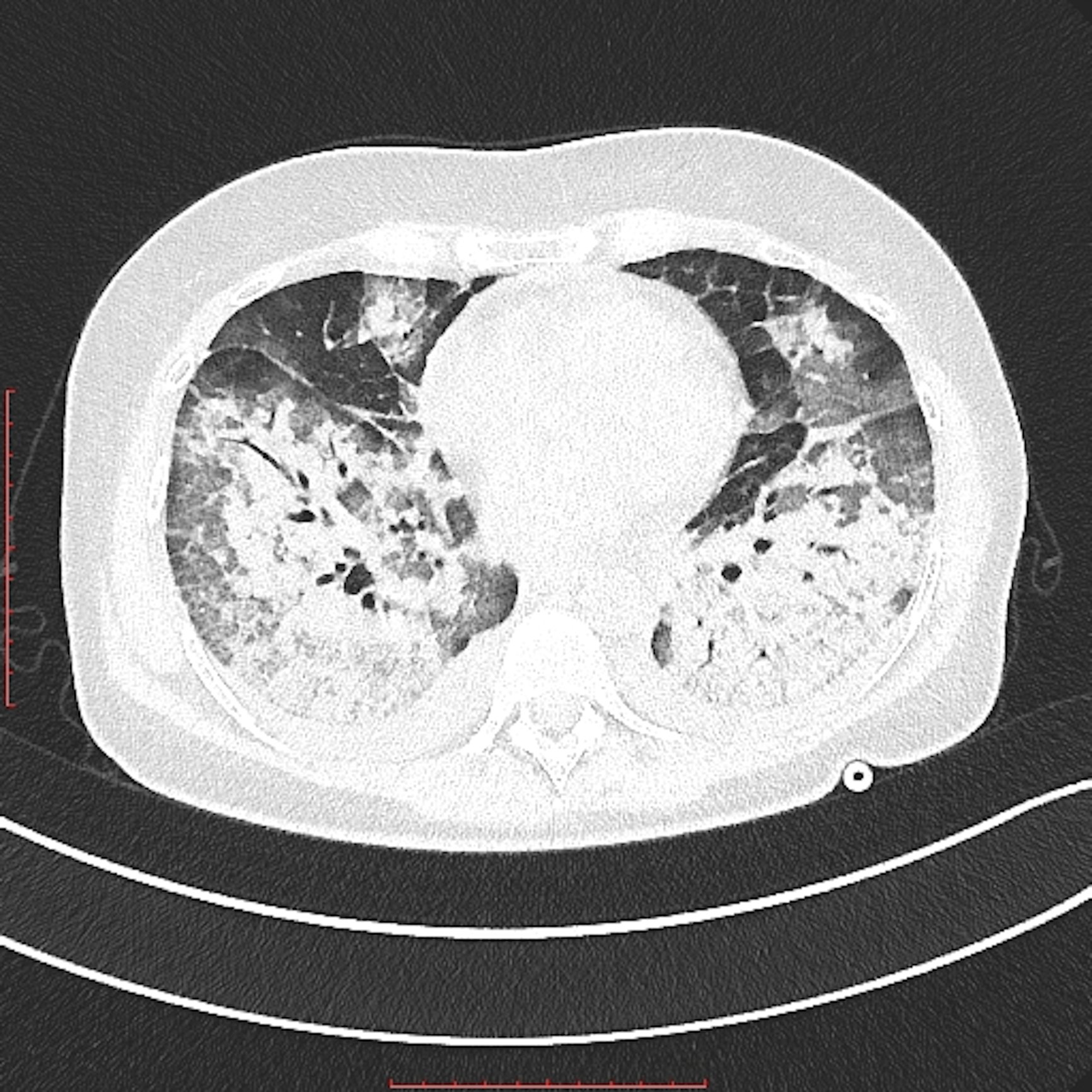 This photo gallery shows the variety of radiological presentations of COVID-19 (SARS-CoV-2) in medical imaging, including computed tomography (CT), radiograph X-rays, ultrasound, echocardiograms and magnetic resonance imaging (MRI). The radiology images show examples of typical COVID pneumonia in the lungs and the numerous complications the virus causes in the body in multiple organs, including the brain, kidneys, heart, abdomen and vascular system.