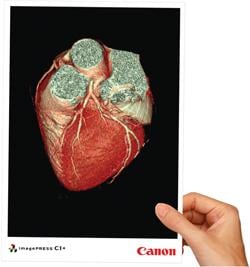 The Cypher PS print server and Canon imagePress C1+ digital printing solution is a cost-effective answer that enables radiology departments to print high-quality digital imaging and communications in medicine (DICOM) images on various types and sizes of paper. This digital printing solution helps to cut the cost of expensive film usage by providing a low-cost, high-quality alternative.