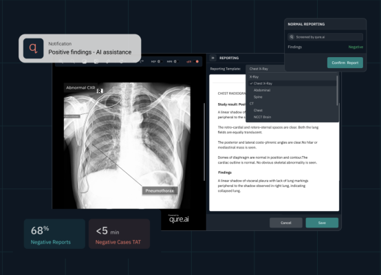 Other recent regulatory milestones for Qure.ai include FDA clearance for qXR-LN to identify and localise lung nodules; qXR-CRT to measure cardiothoracic ratio (CTR) value; qXR-PTX-PE to triage pneumothorax (PTX) and pleural effusion (PE) in emergency rooms / intensive care units (ICUs); and qER for head CT scans.