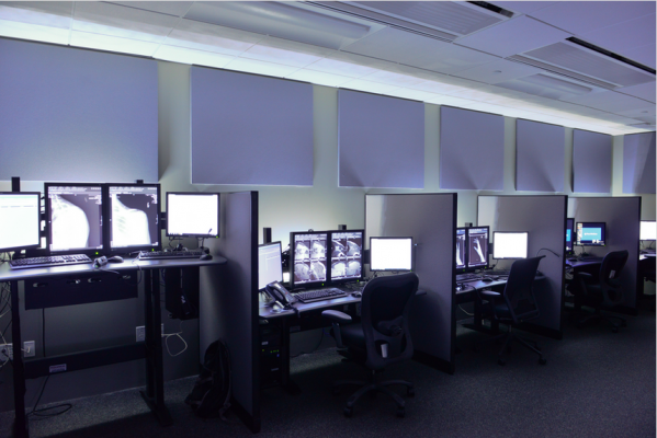 RedRick Technologies, through their regional partner Evolve Technologies, helped address layout, acoustics, and lighting challenges as well as provide eight new ergonomic radiologist workstations that matched the four existing workstations. All workstations are adjustable sit/stand tables, incorporating ComfortView Monitor Mounting systems, recessed data hubs, integrated ambient back-lighting, and adjustable task lighting.