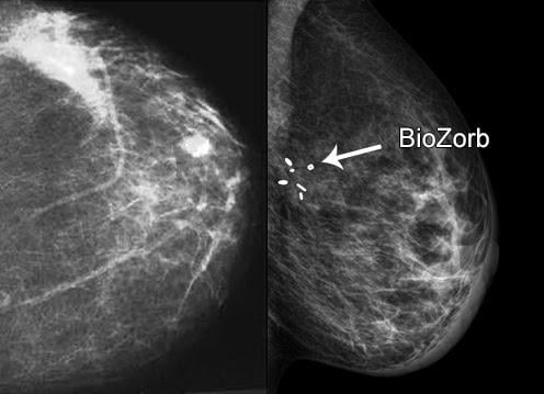 BioZorb is the first and only device, according to manufacturer Focal Therapeutics, that identifies in a reliable way the three-dimensional region where the tumor was removed. By suturing the implant to the tumor bed, the surgeon can more precisely indicate to the radiation oncologist where the cancer was located. Because of the marker's unique configuration, it allows oncoplastic surgery to be used for reconstructing the breast with the patient's own tissues, while at the same time delineating the tumor's previous location.
