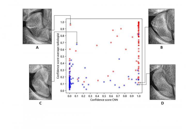 While previous research found that a convolutional neural network was inferior to human observers at identifying scaphoid fractures on X-rays, the new study used larger datasets and further algorithm refinements to improve detection. It also employed class activation maps, which are AI tools that help users understand what region of the image is influencing the network's predictions.