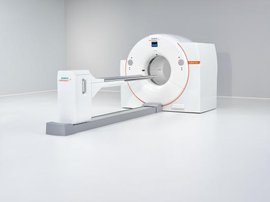 The Biograph Vision possesses new Optiso UDR detector technology that is based on 3.2 x 3.2 mm lutetium oxyorthosilicate (LSO) crystal elements and digital silicon photomultipliers (SiPMs). With this technology, the system delivers higher spatial resolution while achieving what Siemens calls the industry’s fastest time-of-flight, with a temporal resolution of 214 picoseconds, as well as an effective sensitivity of 100 cps/kBq. For these reasons, the Biograph Vision helps to reduce scan time to as low as 3 minutes per patient to improve throughput, reduce patient radiation exposure and cut tracer cost. The 78-cm bore aids in patient positioning and can help ensure patient comfort.