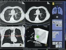 The software provides 3-D visualization of thin slices and computer-guided localization of lesions and allows physicians to rotate the image for inspection. Past and present studies can also be loaded by the physician for comparison and to track changes in volume.
