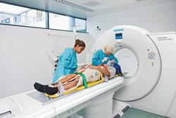 The Somatom Definition Edge employs the new TrueSignal technology of the Stellar Detector, which for the first time integrates the electronic detector components into the photodiode. With the aid of TrueSignal technology, Stellar may significantly reduce electronic noise and potentially improve the signal-to-noise ratio of the images. To date, a spatial resolution of up to 0.33 mm has been possible with Siemens single-source CT scanners. However, in critical cases like cardio-vascular examinations or in emergency diagnostics, every additional visible micrometer can be significant. The examination of adipose patients further illustrates how Stellar's signal processing may potentially open up new possibilities in clinical practice. An obese patient can attenuate the signal from the X-ray tube to such an extent that many CT systems can no longer generate images suitable for diagnostic purposes. Even where signals are weak, TrueSignal technology may enable the generation of images with contrast levels that the physician may be able to use for diagnostic purposes.
