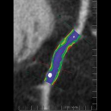 On the AquariusNET thin-client software, the AQPlaque toolkit extend the analysis to production of a histogram of voxel values along the defined section of vessel, raising the possibility for a researcher to identify voxel population peaks corresponding to healthy wall and lumen, and to observe potential shift and broadening of these peaks in the presence of disease. Luminal area and vessel cross-sectional dimensions can be readily reported for comparison with angiography and intravascular ultrasound.