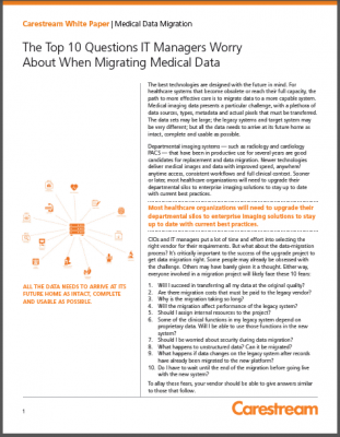 Transitioning to the optimal performance of new imaging systems in turn requires migration of data to the new system. This White Paper covers the primary concerns that arise when CIOs and IT managers address this challenge.