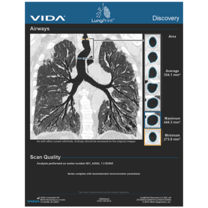 Respiratory AI solutions from VIDA are used to assess the lung characteristics associated with chronic, complex lung disease, such as COVID-19 related lung damage, chronic obstructive pulmonary disease (COPD), interstitial lung disease, emphysema, and asthma. In addition to clinical applications, pharmaceutical companies rely on VIDA's ISO 13485-certified core lab processes to facilitate research on drug therapies for people with these life-changing conditions.