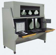 The Mammography Digital Viewing Station is designed for departments converting to digital mammography as an efficient workstation to compare new digital studies and previous analog images. The high capacity upper film belt allows for viewing multiple studies and the lower tier accommodates up to three CRTs/ flat panel monitors.
