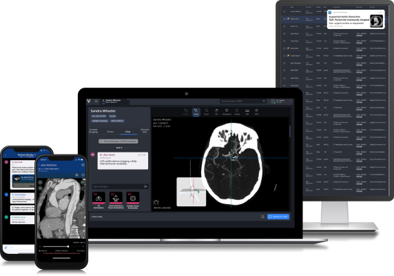 Vascular teams are often challenged to make critical treatment decisions with limited information. Viz AORTIC accelerates time-to-notification to specialists giving them access to clinically-relevant imaging and patient information for appropriate patient treatment plans. The solution includes AI-powered alerts, high-fidelity mobile image viewing, relevant clinical information, and HIPAA-compliant communication to facilitate workflow and improve patient care for all aortic conditions.