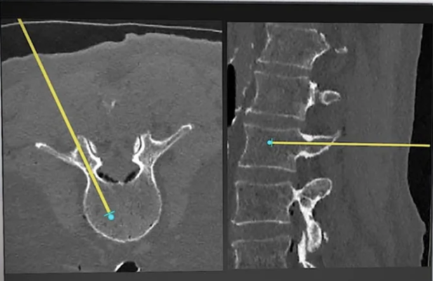 Over three million1 surgeries for correcting spinal instability and/or deformation, collectively known as spinal stabilizations, are performed annually worldwide, with as many as a third of those in the U.S.1 These procedures include vertebral fixation with pedicle screws, vertebral fixation coupled with fusion, and vertebral augmentation with synthetic or biological cement. The vast majority of stabilizations treat short spinal segments1. Short-segment surgeries are most often assisted only by standard 2D X-ray. The risk of pedicle screw misplacement has been shown to be greater under X-ray guidance than in navigated surgery 2,3.