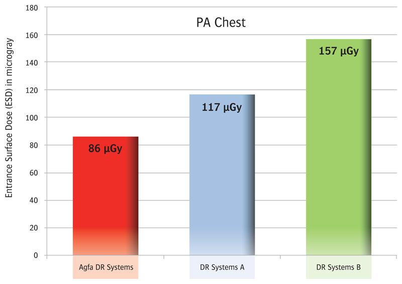 The results showed that while the amount varied depending on the type of exam, the average dose on most was 41% lower with the Agfa HealthCare system versus the other systems — an admittedly unexpected result for Zwanger-Pesiri.